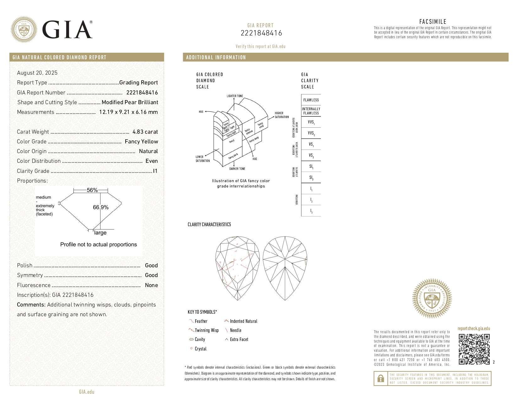 4.83 Pear Shape Fancy Light Yellow I1 GIA