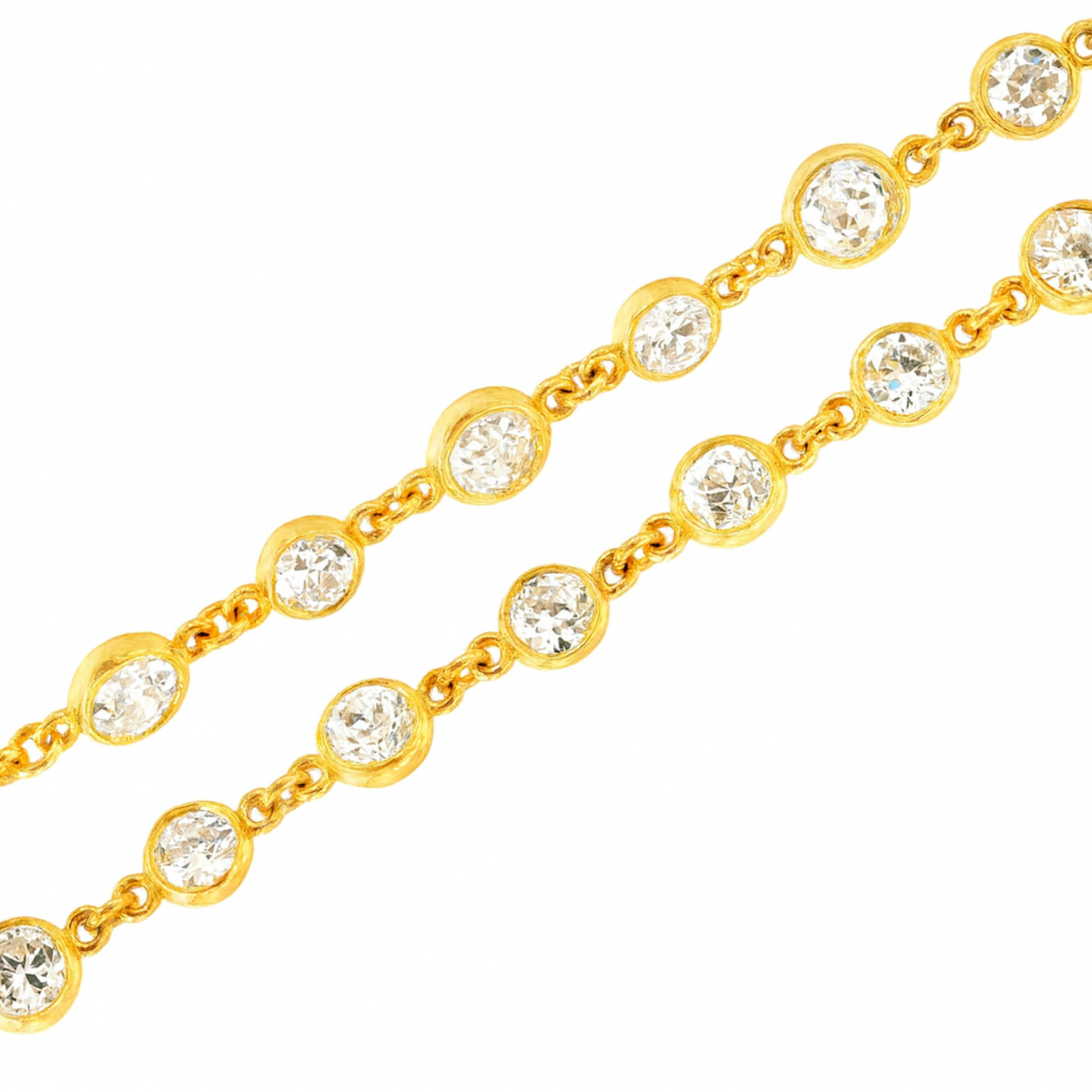 This substantial chain design features bezel-set antique diamonds along its length—bold yet wearable, with a strong vintage presence. Hand crafted in the United States by artisan jewelers.