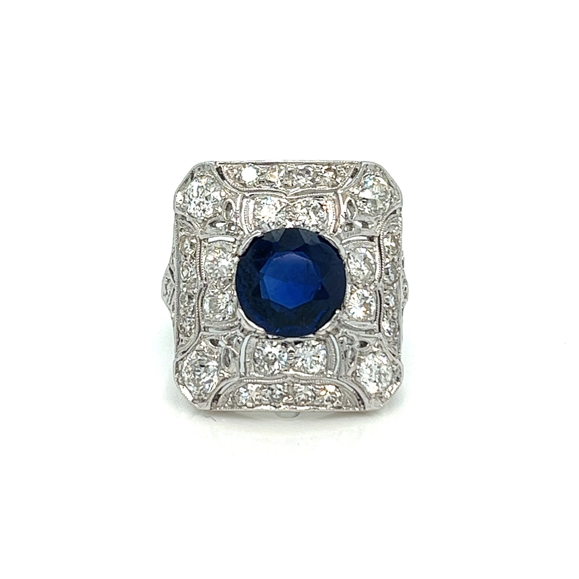 Edwardian 2.98 ct. Round Sapphire (AGL, No Heat) Cocktail Ring, Platinum