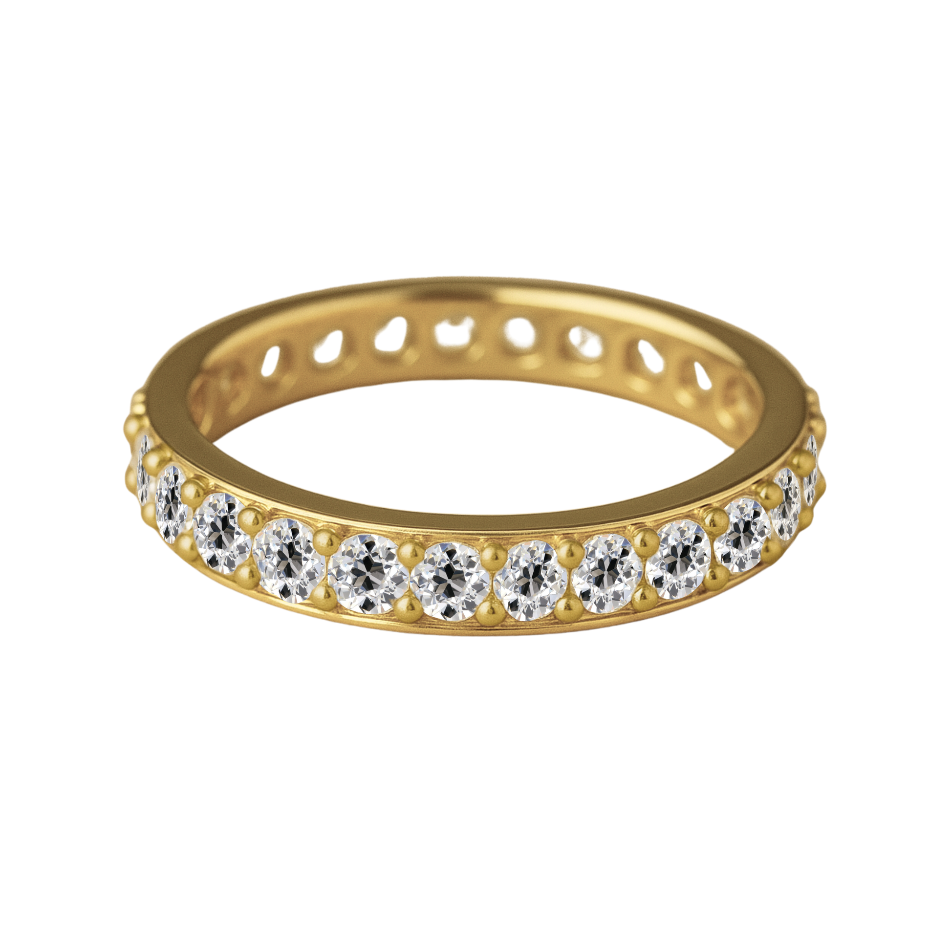 An all-around band of antique Old European cuts, each hand-set for a continuous glow of soft, old-world brilliance. Classic, weighty, and timeless from every angle.